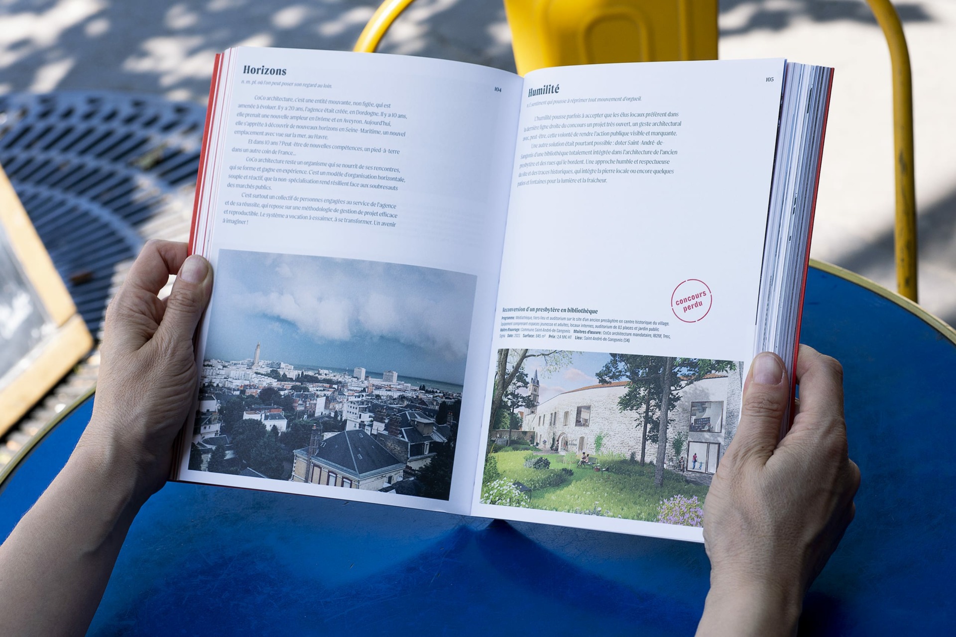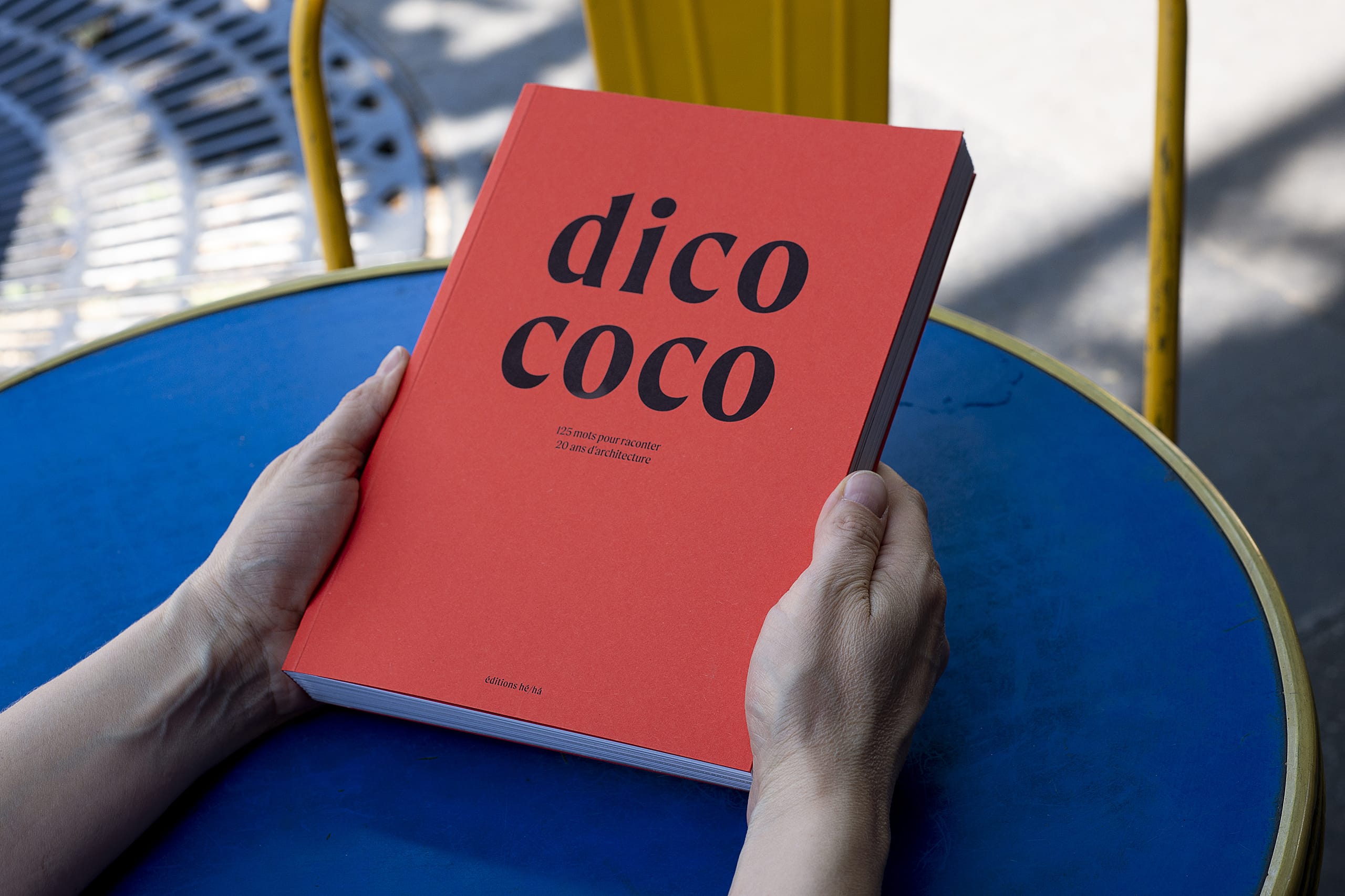Chez tabaramounien, nous imaginons des livres depuis 18 ans pour des institutions, des associations, des artistes… Nous avons aujourd’hui décidé de nous lancer dans une nouvelle aventure : la création de la maison d’édition hé/há, hors d’eau/hors d’air, en association avec l’architecte David Vernet. Bien sûr, nous parlerons design graphique et architecture mais pas que. L’idée est de mettre en lumière les cheminements de la conception artistique et les processus de travail. Pour notre premier ouvrage, nous avons travaillé avec l’agence CoCo architecture.
